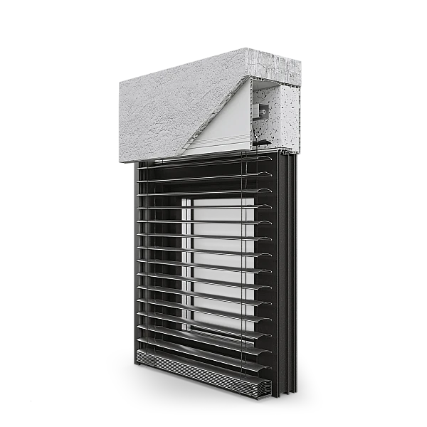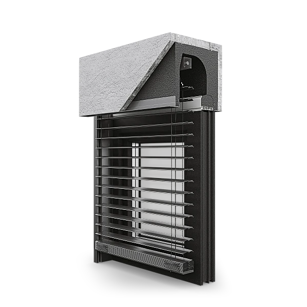 SKEFF využívá charakteristický box se zkosením 45° z vnější strany, což z něj dělá skvělou volbu pro projekty preferující ostré a geometrické detaily. Díky univerzálnímu tvaru boxu jej lze instalovat přímo na fasádu nebo do okenního ostění.