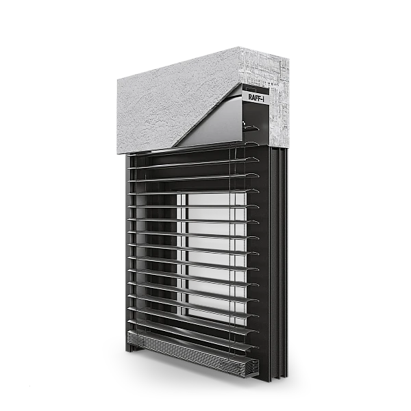 RAFF-i je moderní systém s hliníkovým nadpražním boxem. Speciální čepy vystupující z boxu se zasouvají do předem namontovaných vodicích lišt, což umožňuje rychlou a jednoduchou montáž. Instalace obvykle trvá 25–30 minut na jedno velké okno nebo dveře.